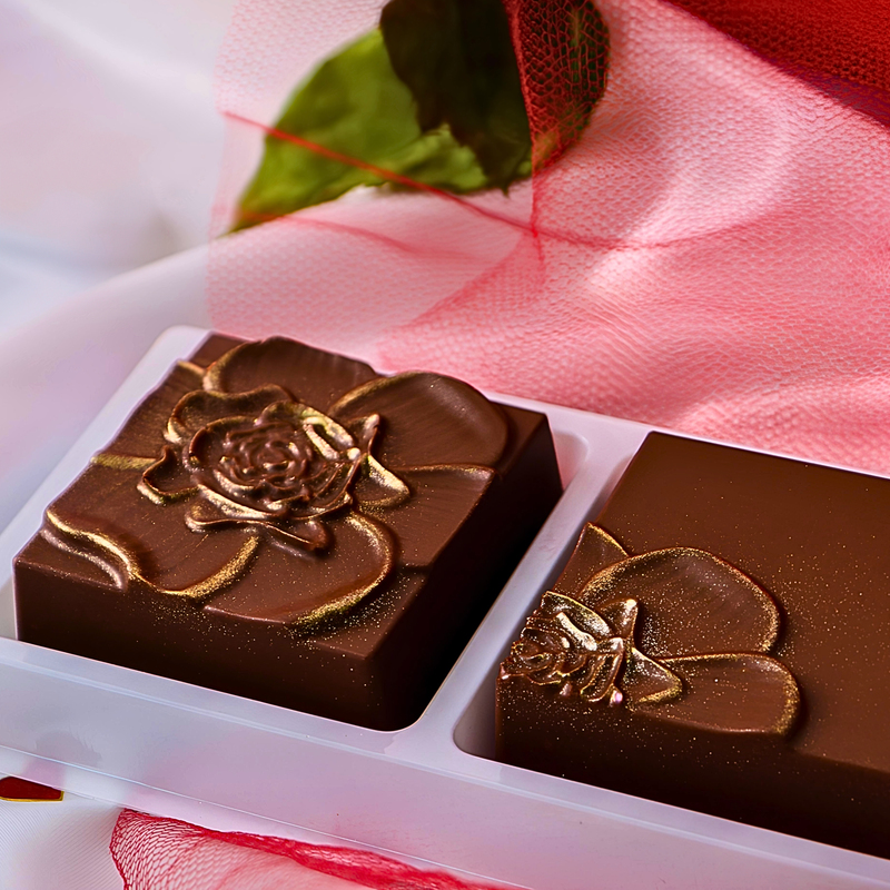 3️⃣ Inserisci il controstampo: il cioccolato si distribuirà in modo uniforme fino ai bordi.