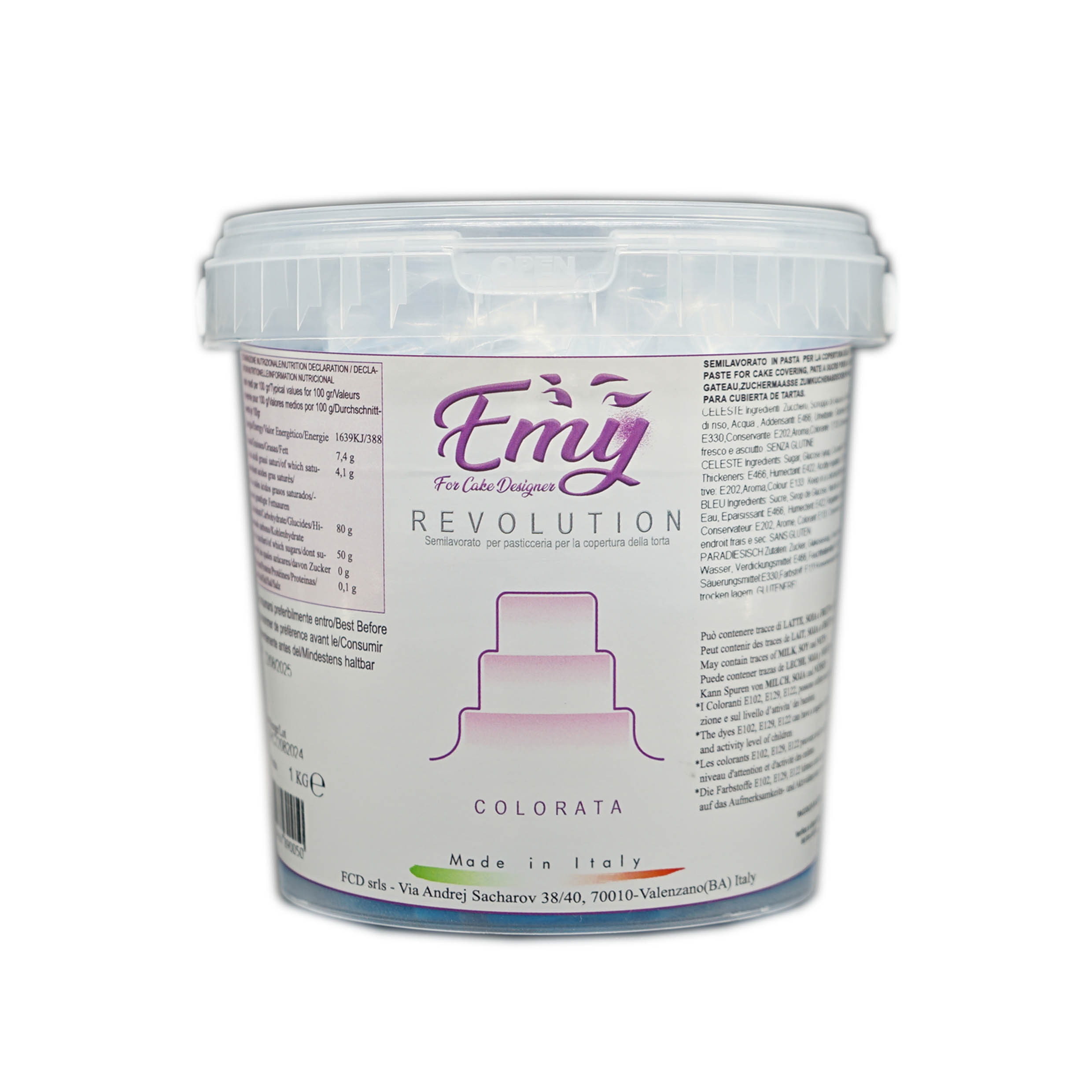 Pasta di zucchero fondente Emy Revolution è una pasta dalla consistenza molto elastica, incredibilmente setosa e dal colore bianco puro perfettamente idoneo alla copertura di torte nuziali.