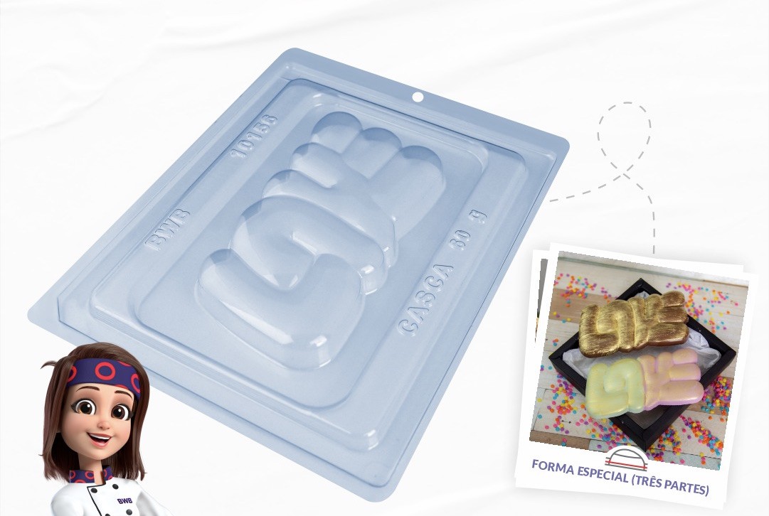 Stampo per cioccolato composto da 3 pezzi (2 rigidi e 1 flessibile in “silicone”)